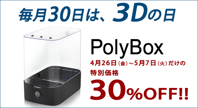 今回のタイムセールは、「PolyBoxフィラメント防湿ボックス」が30%OFF!!