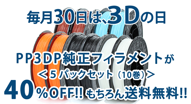 対象商品①:PP3DP純正フィラメント(ABS+樹脂) 5パックセット