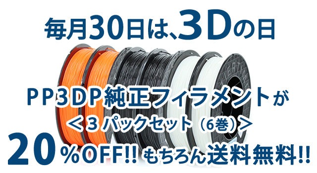 対象商品②:PP3DP純正フィラメント(PLA) 3パックセット