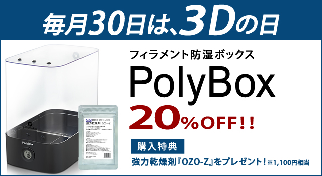 キャンペーン内容、フィラメント防湿ボックス『PolyBox』が20%OFF!